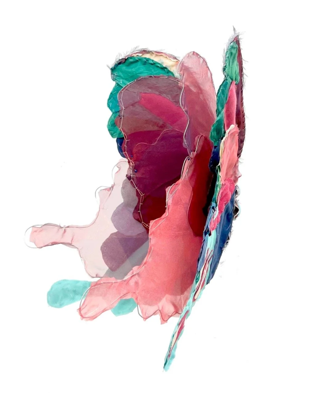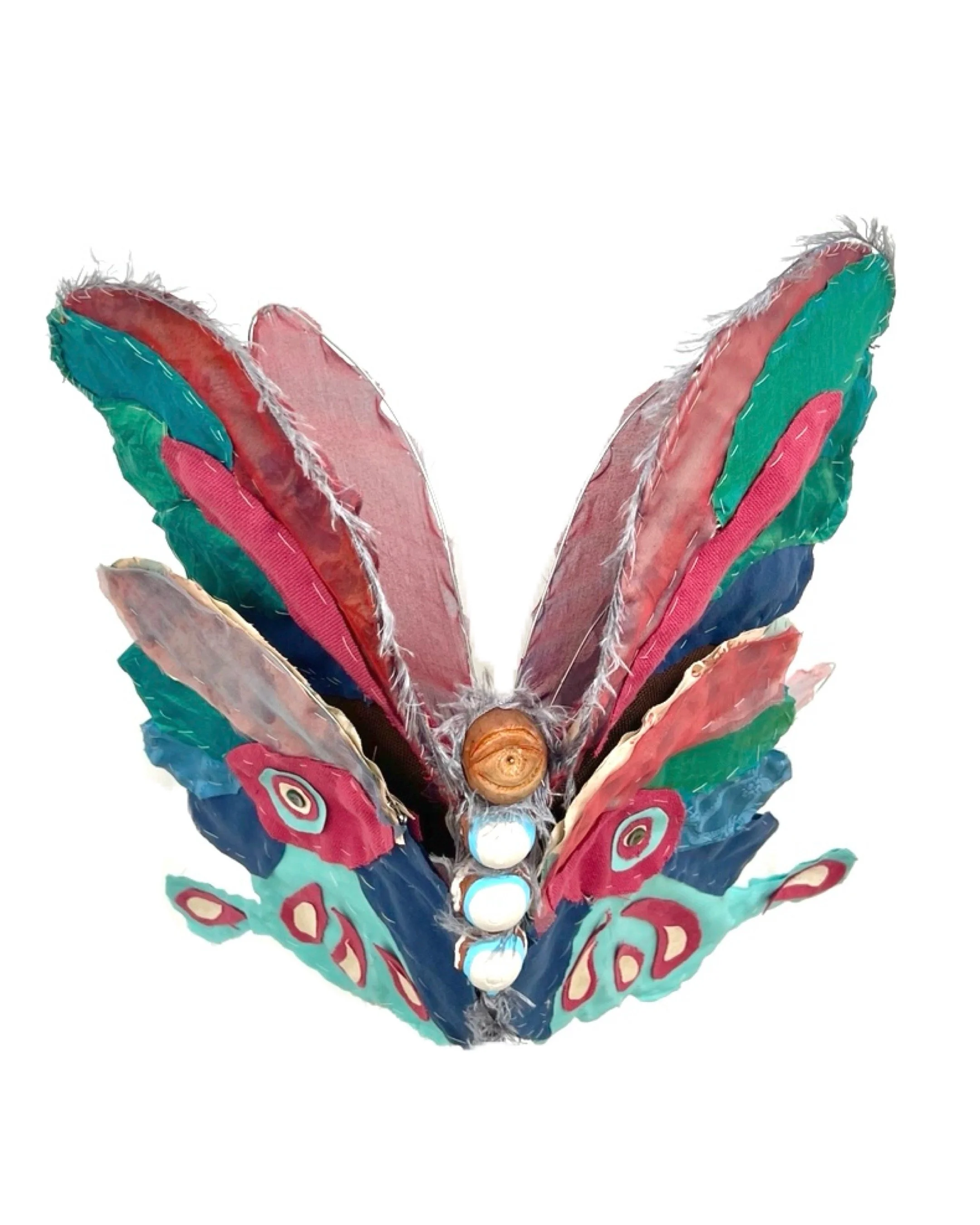 Butterfly, textile, wire bone, avocado pit, 2 x 5ft., 2025